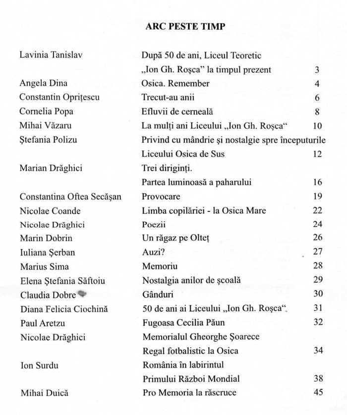 „Rădăcini”, ediție specială, 2016 Jubileul Liceului „Ion Gh. Roșca” din Osica de Sus Citește în format ePaper (pe issuu.com: LINK) Descarcă PDF Sumar: Descarcă PDF