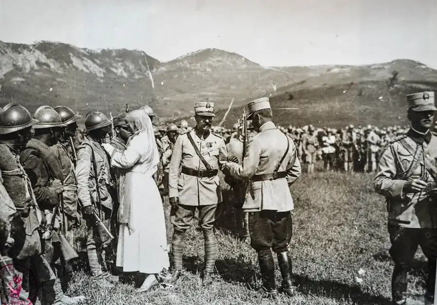 Regina o descoperă pe prima femeie soldat luptător cu arma în mână, Ecaterina Teodoroiu, şi întrevede în ea marea putere de simbol de care armata şi românii aveau atâta nevoie. Simbolul luptei dârze pentru o idee măreaţă şi o victorie îndreptăţită de credinţă şi dreptatea istorică, este această fată din Gorj, pe care regina o încurajează din momentul în care nu a reuşit să o convingă să fie vivandieră alături de ea.